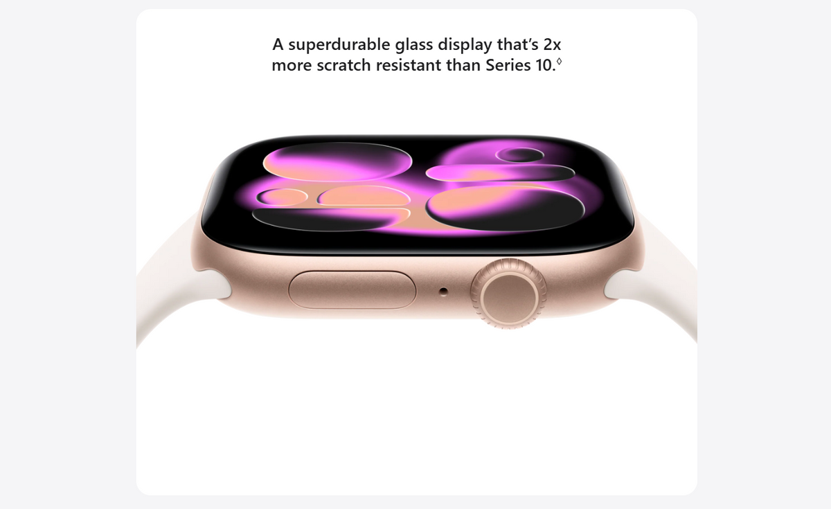 Scratch Resistance: Apple Watch Series 11 is 2x scratch resistant when compared to earlier models.