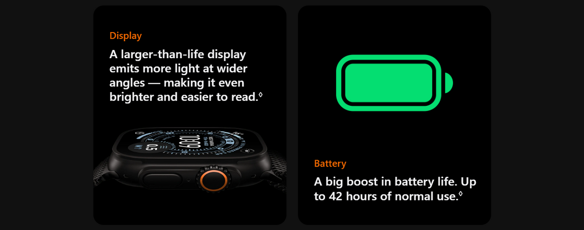 Brighter When Viewed at an Angle: When angled away from the user as compared with Apple Watch Ultra or Ultra 2.