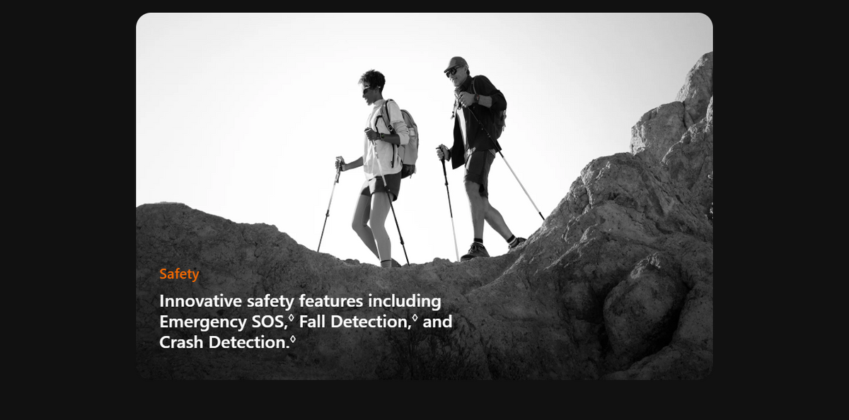 International Emergency Calling: Requires Apple Watch Series 7, SE, Ultra, or later. For a list of supported countries and regions, see apple.com/ae/watchos/feature‑availability.