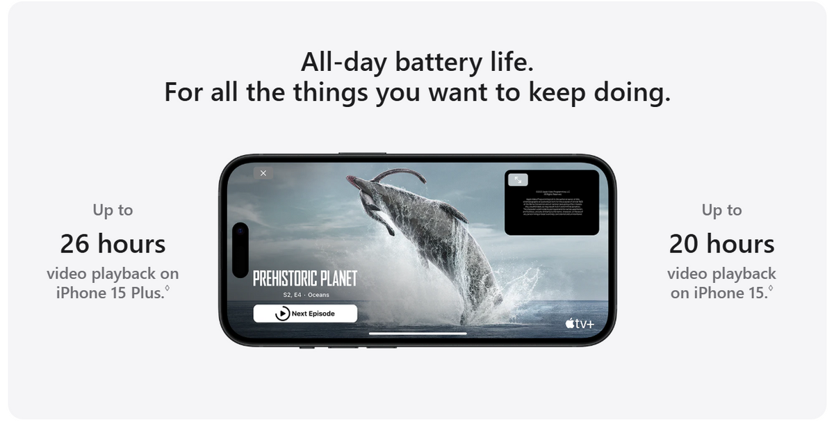 Power and Battery: All battery claims depend on network configuration and many other factors; actual results will vary. Battery has limited recharge cycles and may eventually need to be replaced. Battery life and charge cycles vary by use and settings. See apple.com/ae/iphone/battery.html and apple.com/ae/iphone/battery.html for more information.