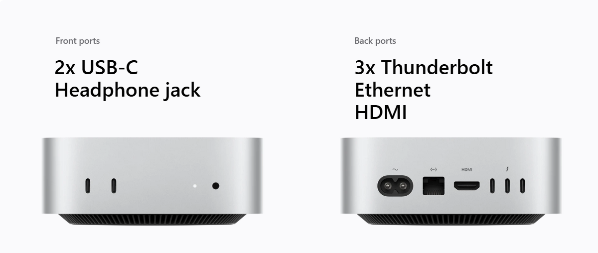 Introducing Mac mini with the M4 and M4 Pro chips. Redesigned both inside and out, it’s smaller and faster than ever. With front‑facing ports. And it’s built for Apple Intelligence.