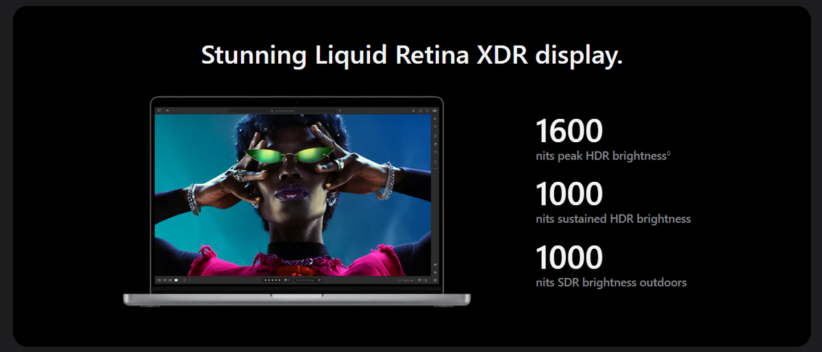 Display Brightness: 1600 nits peak brightness in temperatures less than 25° C.