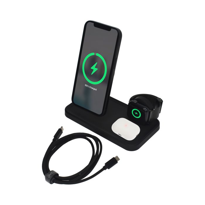 Description | Dviced 3-in-1 magnetic wireless stand w cable - Black |